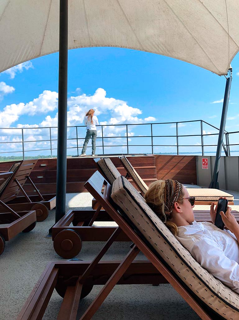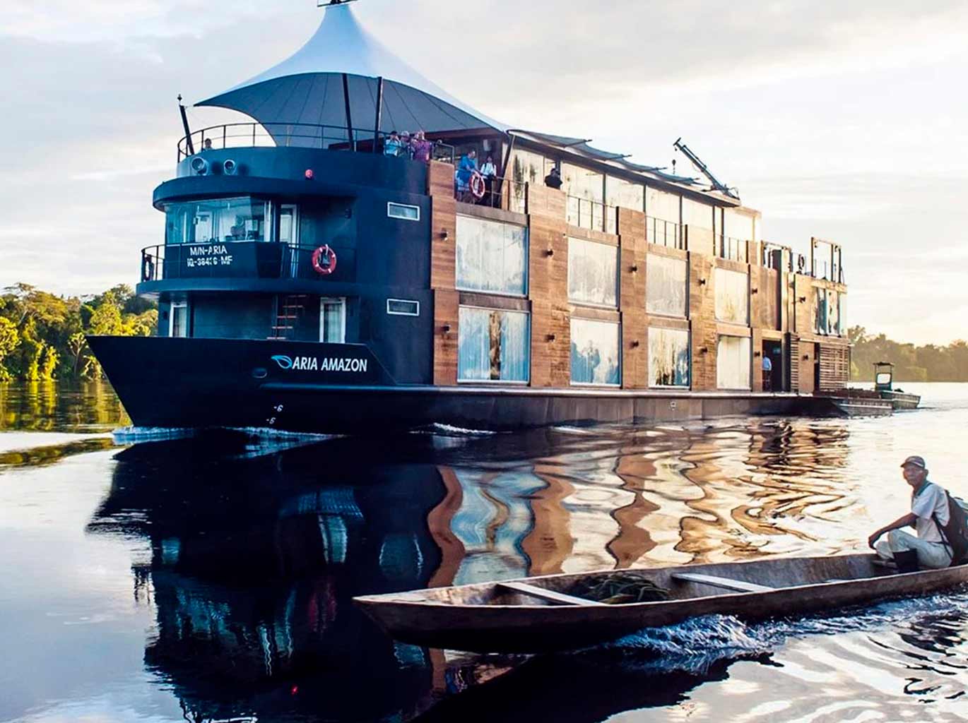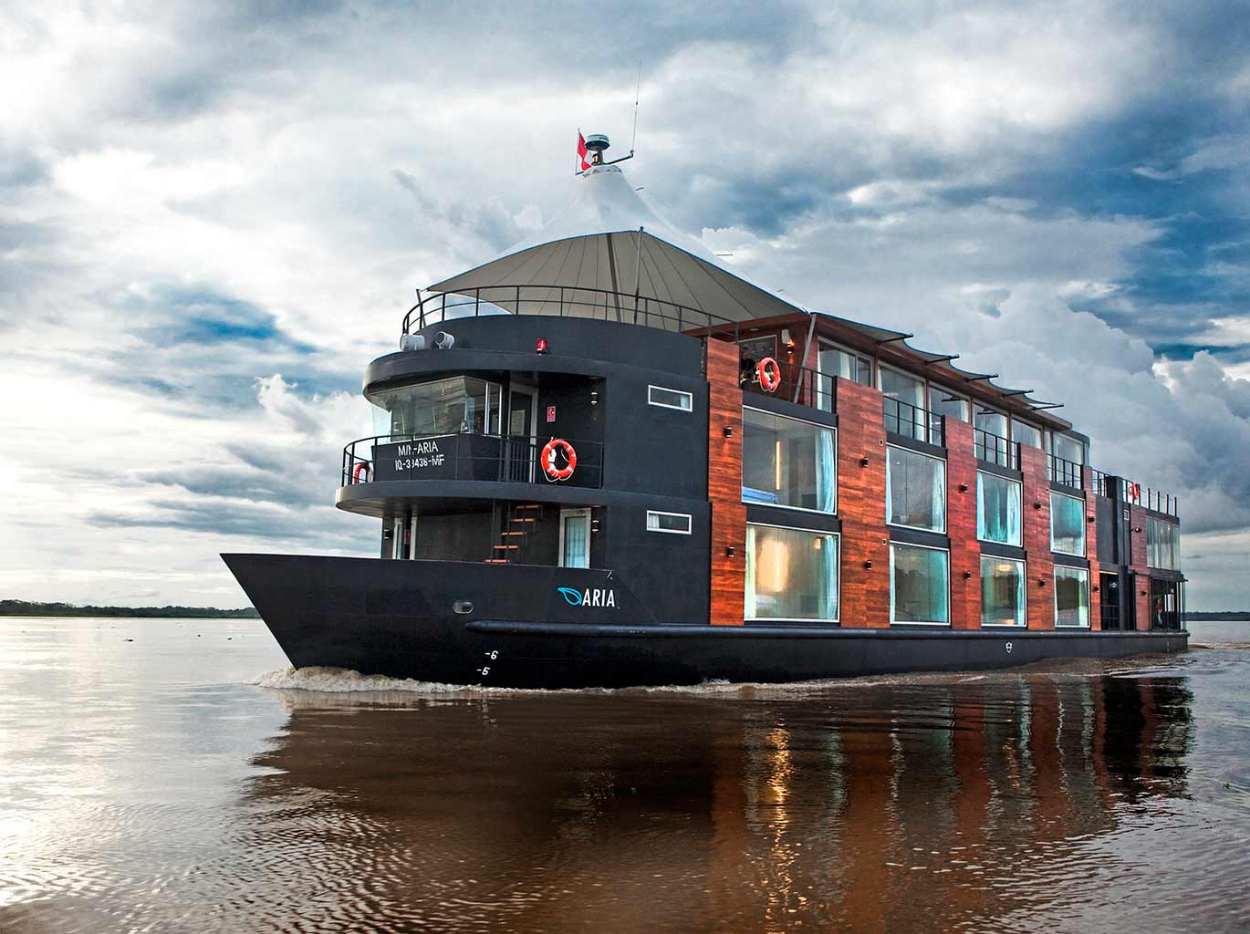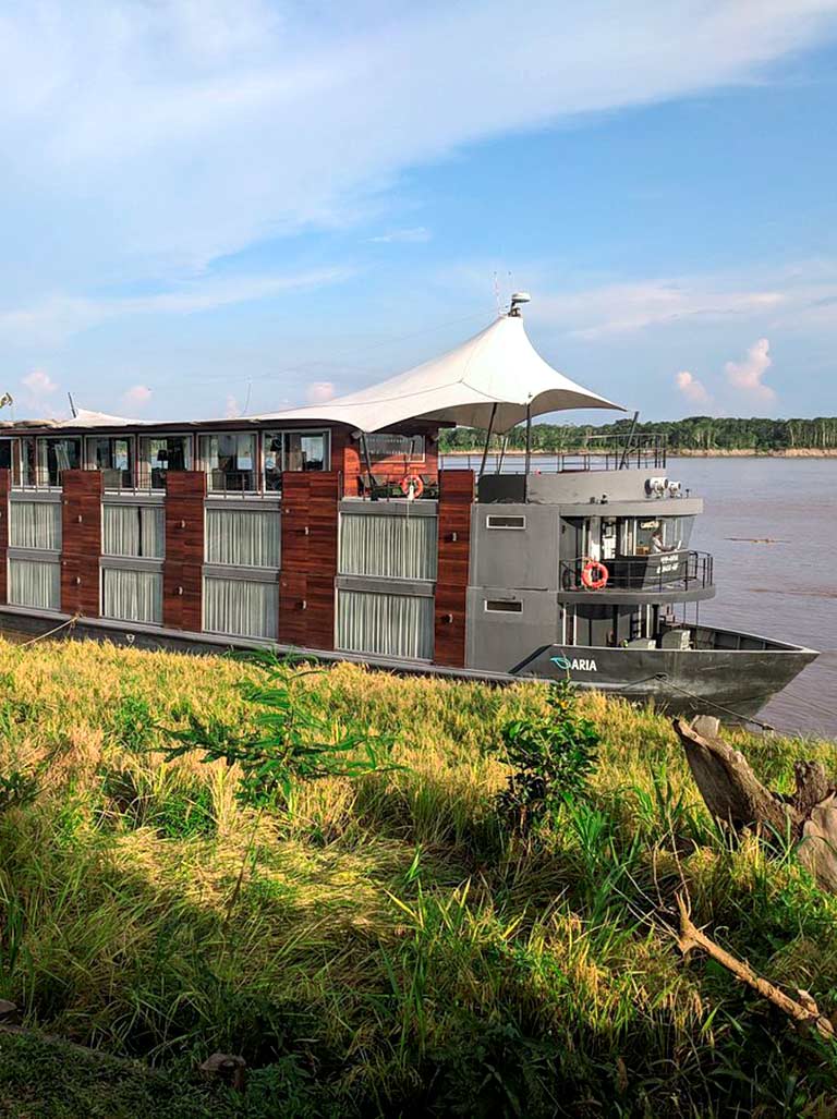- In the afternoon we board the Aria Amazon cruise, which has comfortable suites with beautiful views of the river, as well as luxurious shared areas.