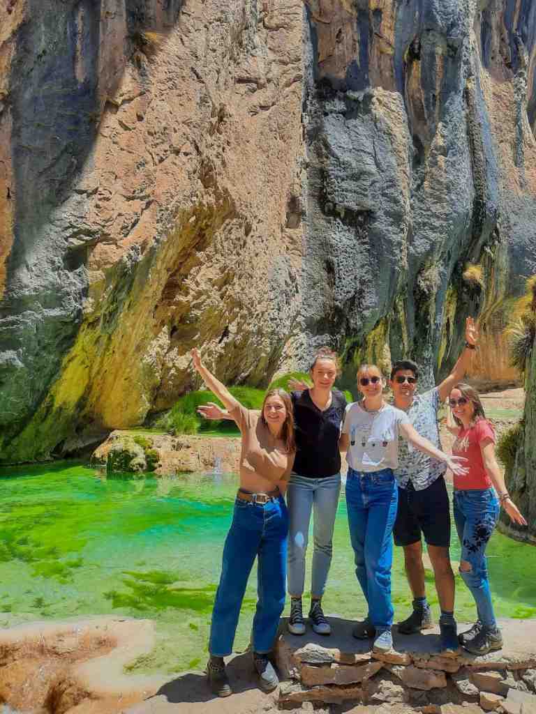 - Once in Huancaraylla, we begin with the walk to the natural pools of Millpu. This popular tourist attraction is also called ‘The hidden gem of Ayacucho’, due to its natural beauty. It is a set of pools formed naturally from a waterfall that runs through a high canyon and offers a beautiful landscape of intense turquoise waters.