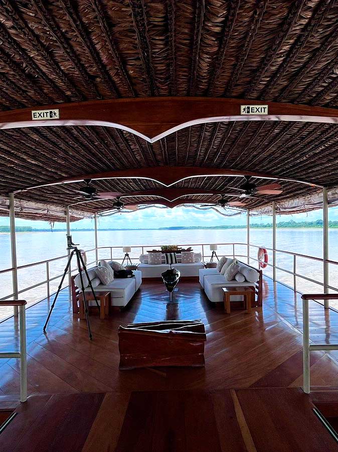 - Lá apreciaremos o pôr do sol na Amazônia, um dos momentos mais lindos do cruzeiro.