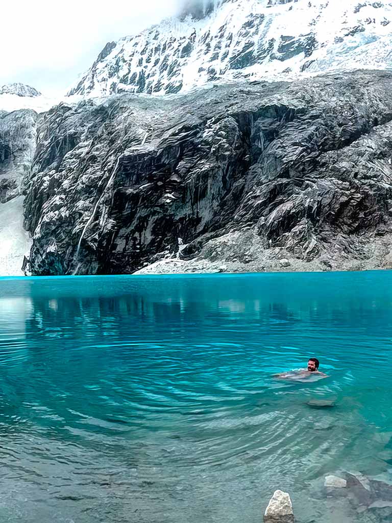 - Através de uma última viagem em transporte turístico chegaremos ao acampamento Cebollapampa (3.850 metros acima do nível do mar). Ali começa a caminhada até a Lagoa 69. O percurso é intenso, por caminhos planos e íngremes cercados por paisagens incríveis de montanhas nevadas, montanhas, cachoeiras, riachos e muito mais. No percurso o visitante também poderá apreciar a flora e a fauna naturais (ichu, vizcachas, pássaros e muito mais). Após quase 3 horas de caminhada chegaremos à lagoa 69.