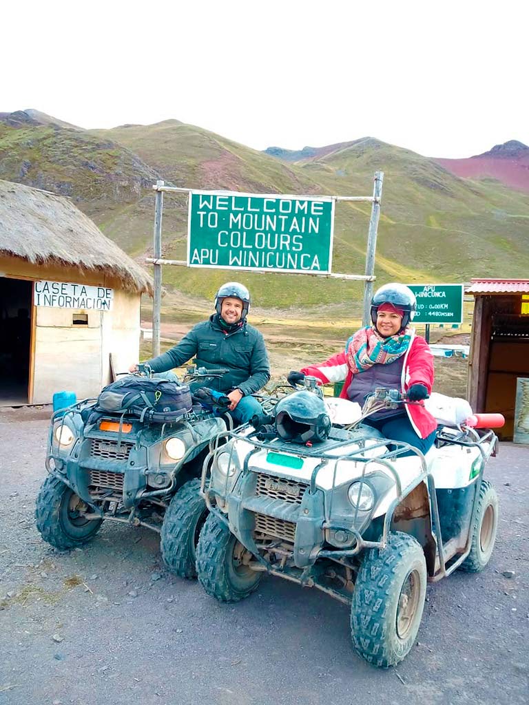 - Aproveite a famosa Vinicunca em uma memorável aventura de quadriciclo. O passeio começa com o embarque na porta do seu hotel (aproximadamente às 3h30 da manhã). Depois viajaremos para Cusipata onde desfrutaremos de um delicioso e nutritivo café da manhã buffet. A aventura de quadriciclo dura aproximadamente 1 hora e 30 minutos. Depois, há uma curta caminhada de 45 minutos até Vinicunca. A volta segue o mesmo trajeto (almoço buffet em Cusipata) antes de chegar a Cusco.