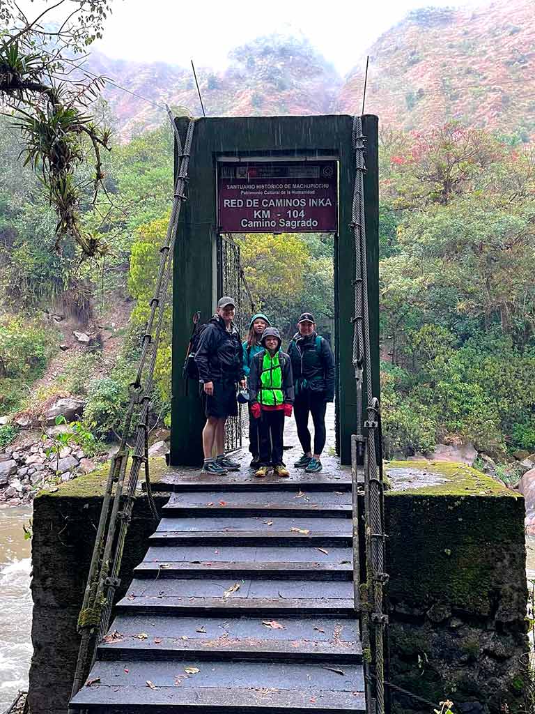 - No quilômetro 104 começa a caminhada. Juntamente com todo o grupo nos prepararemos para iniciar o percurso de 13 quilômetros por estradas ascendentes, planas e descendentes. Após o registro no posto de controle, há uma curta caminhada para chegar ao sítio arqueológico de Chachabamba.