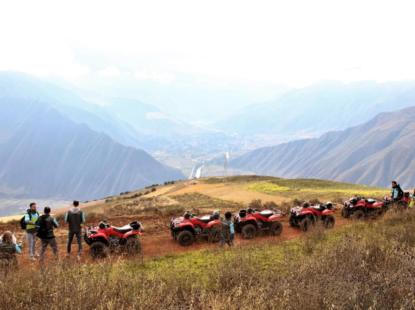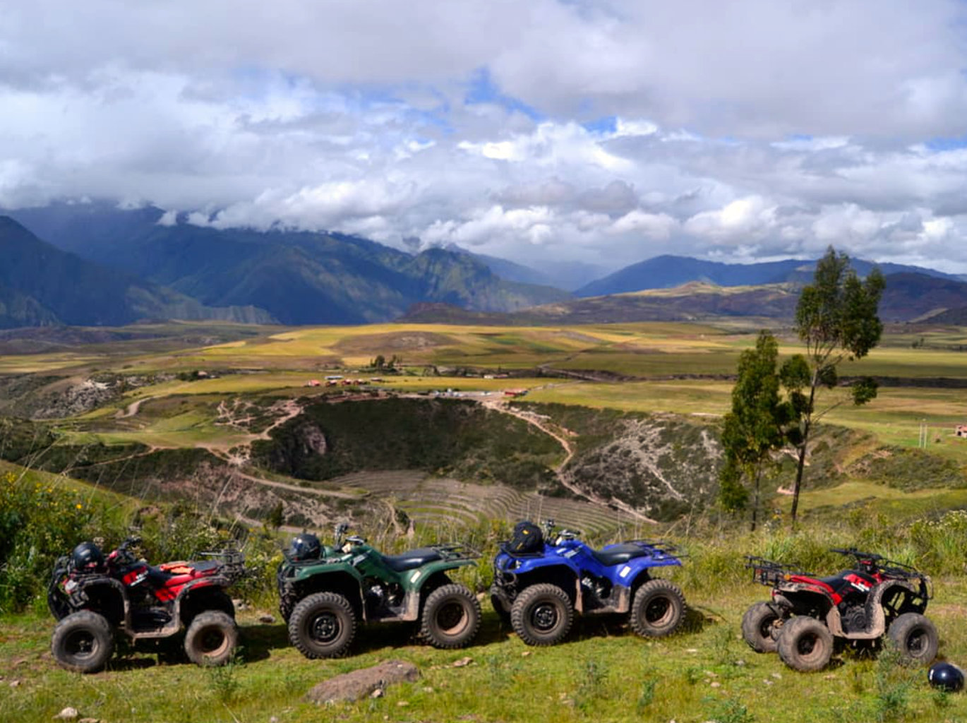 - Conheça as mais belas paisagens do Vale Sagrado dos Incas dirigindo seu próprio quadriciclo. A viagem começa com o transporte até a cidade de Cruz Pata, ponto de partida onde o guia lhe dará uma aula simples de direção de quadriciclo. A seguir iremos em grupo a bordo de seus respectivos quadriciclos percorrendo as belas paisagens do Vale Sagrado dos Incas, como as montanhas nevadas de Chicón e Verónica. Primeiro visitaremos as plataformas circulares de Moray, um conjunto de terraços agrícolas que os Incas construíram há muitos anos. Hoje é um dos locais mais fotografados devido à sua beleza cênica. A seguir, visite as minas de sal de Maras, um conjunto de poços de sal criados naturalmente há centenas de anos. Finalmente retornaremos ao ponto de partida em quadriciclo.