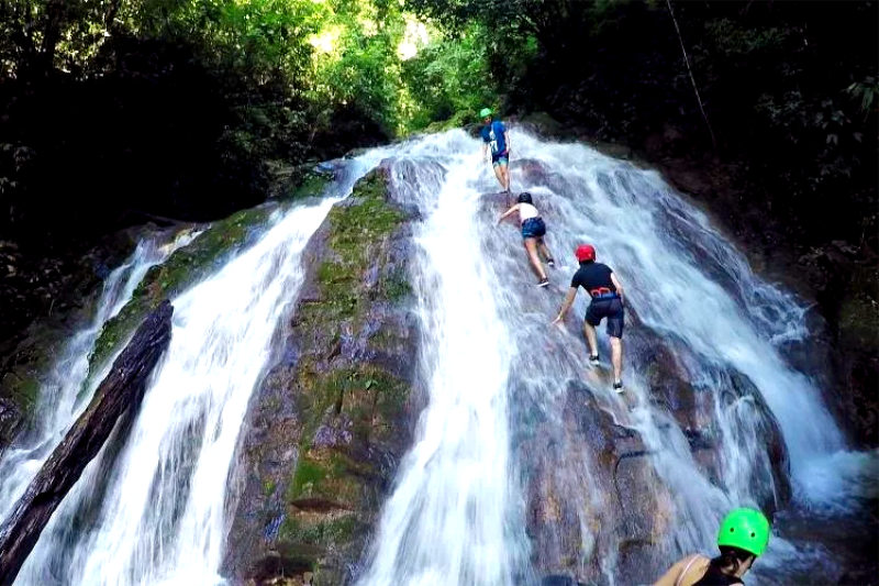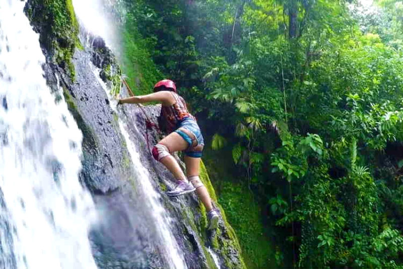 - Na cachoeira de San Miguel, você também pode, como opção, praticar esportes de aventura com a equipe local.