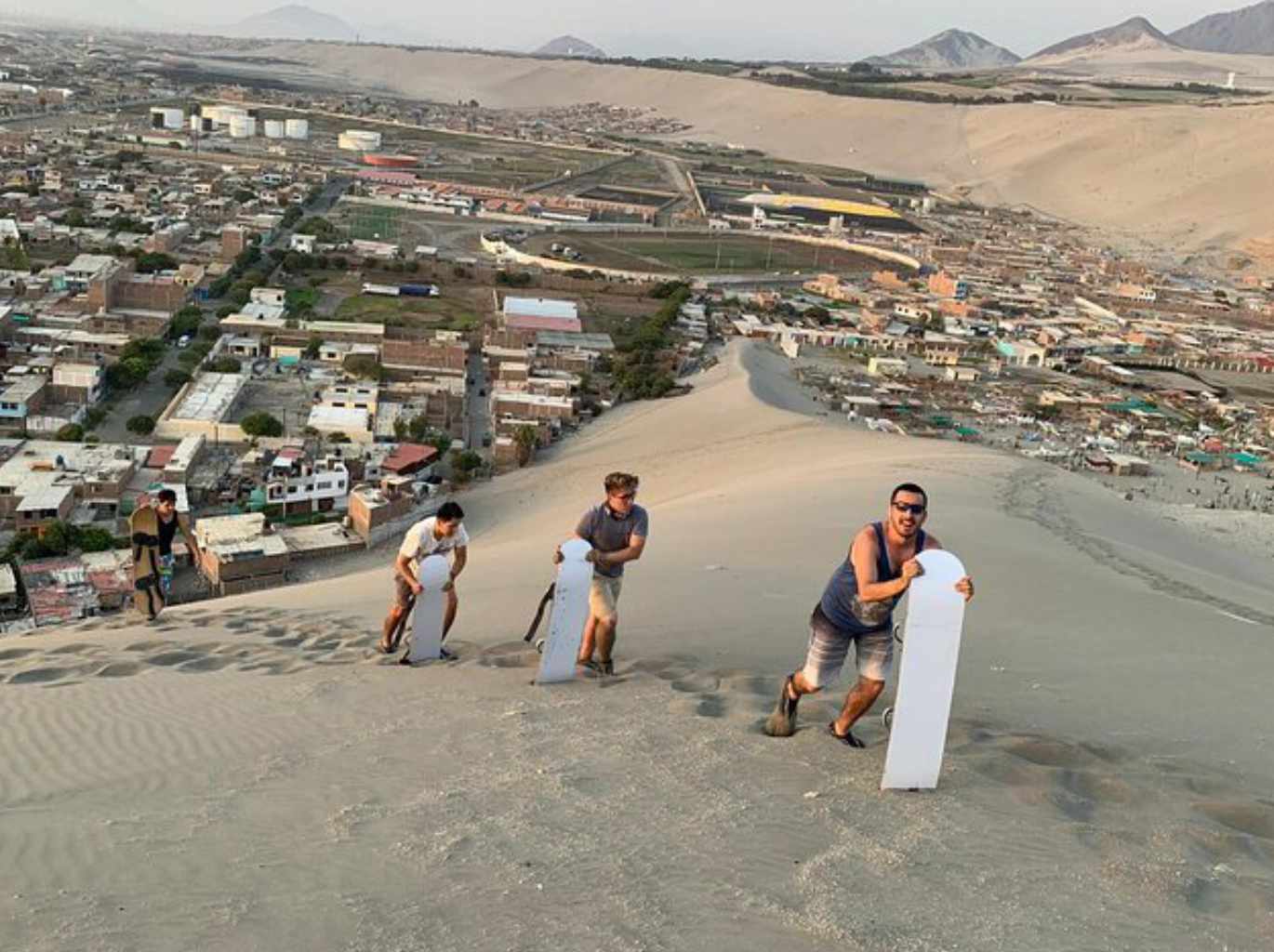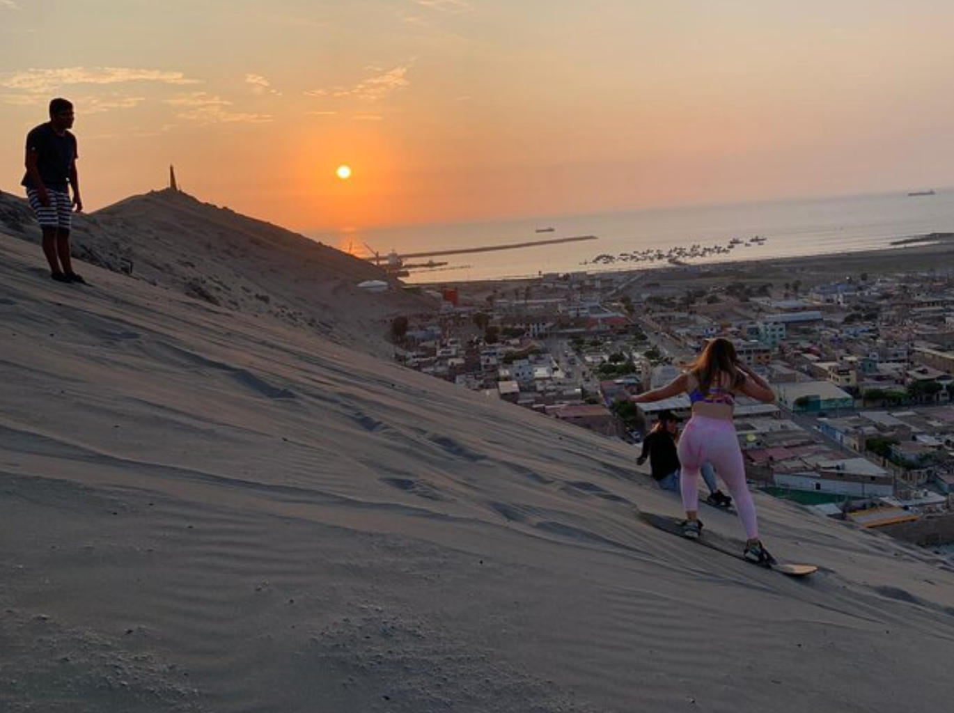 - O tour começa com a retirada do turista em seu hotel ou em ponto acordado mutuamente. Após uma curta viagem chegaremos às dunas do Salaverry durante o pôr do sol. Lá um profissional nos treinará na prática do sandboard, esporte que praticaremos na companhia de amigos. Depois disso, o grupo se reunirá em torno de uma fogueira para apreciar o pôr do sol e compartilhar um momento agradável. No final o transporte o levará de volta ao seu hotel ou a um ponto acordado. O tour inclui tudo: retirada, transporte, equipamento de sandboard (treinamento com profissional) e retorno.