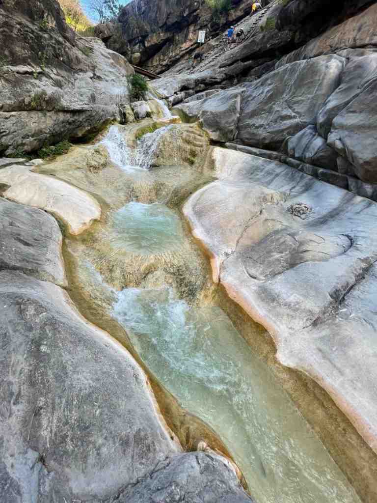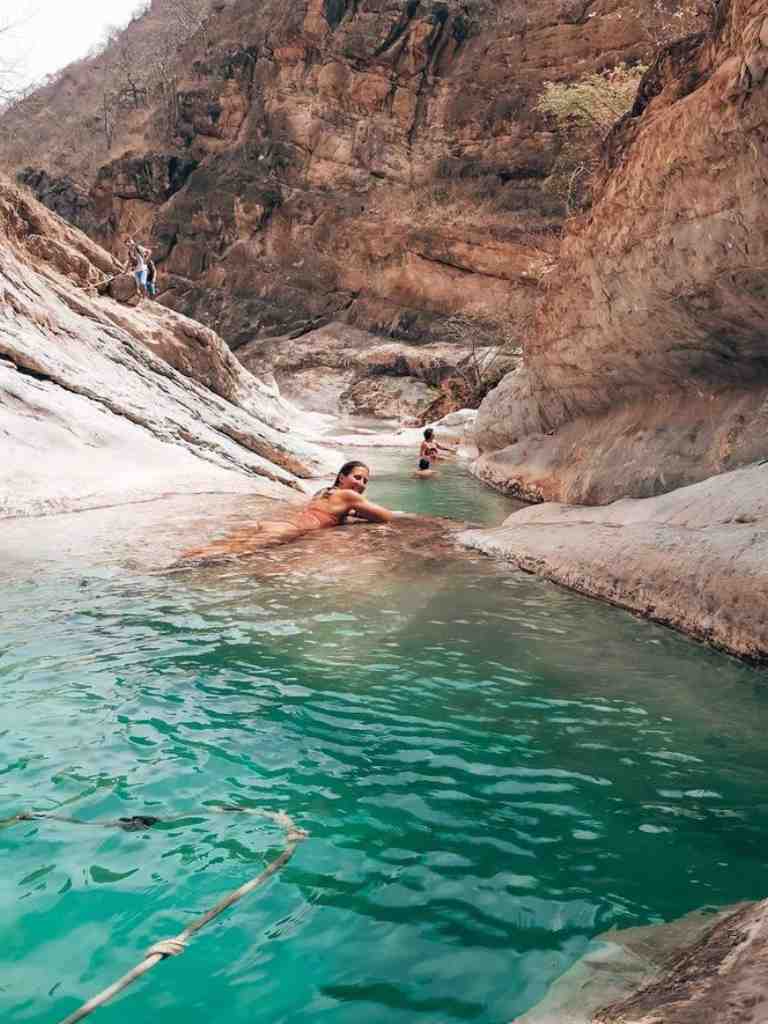 • Os turistas que desejarem podem desfrutar de um mergulho nos poços naturais de água. A maior cova pode atingir oito metros de diâmetro e três metros e meio de profundidade. No local também existem cachoeiras, que continuam formando poças de água ao redor.