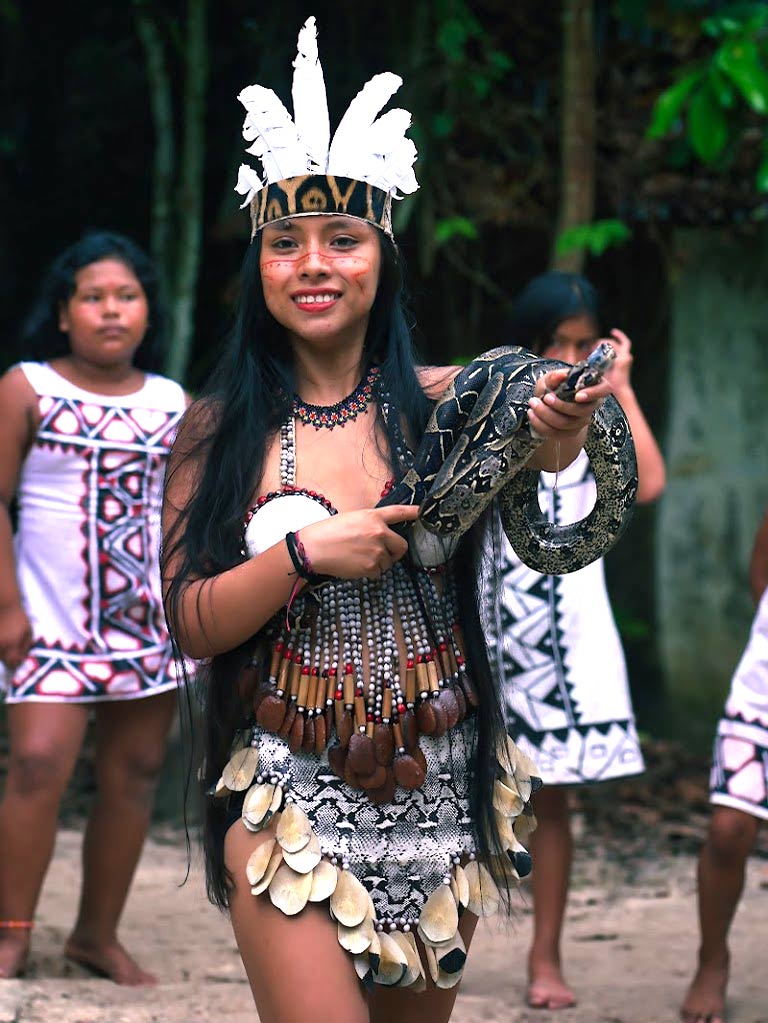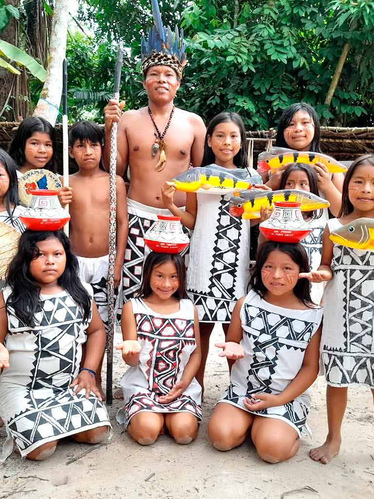 - Por volta das onze horas da manhã, o turista receberá a visita da tribo Kukama. Esse povo habita as vastas regiões de selva do departamento de Loreto, no Peru (estima-se que os Kukamas sejam 37.000 no total no território peruano). Eles demonstrarão ao visitante suas danças, idioma original, costumes e artesanato.
