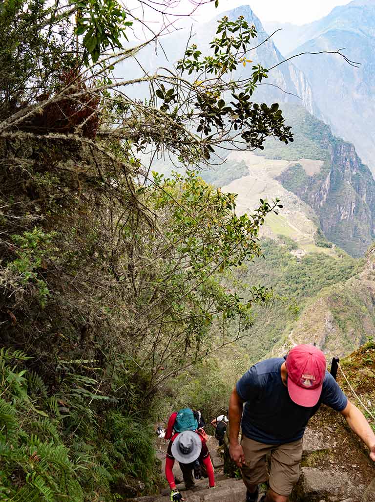 The Huayna Picchu mountain is located northeast of the Inca citadel of Machu Picchu. To get there you must first enter Machu Picchu. After a walk through its main buildings you arrive at the entrance gate (in the area of the Sacred Rock). There begins the walk by stone steps to reach the top of Huayna Picchu. The return route is the same way, but downhill.