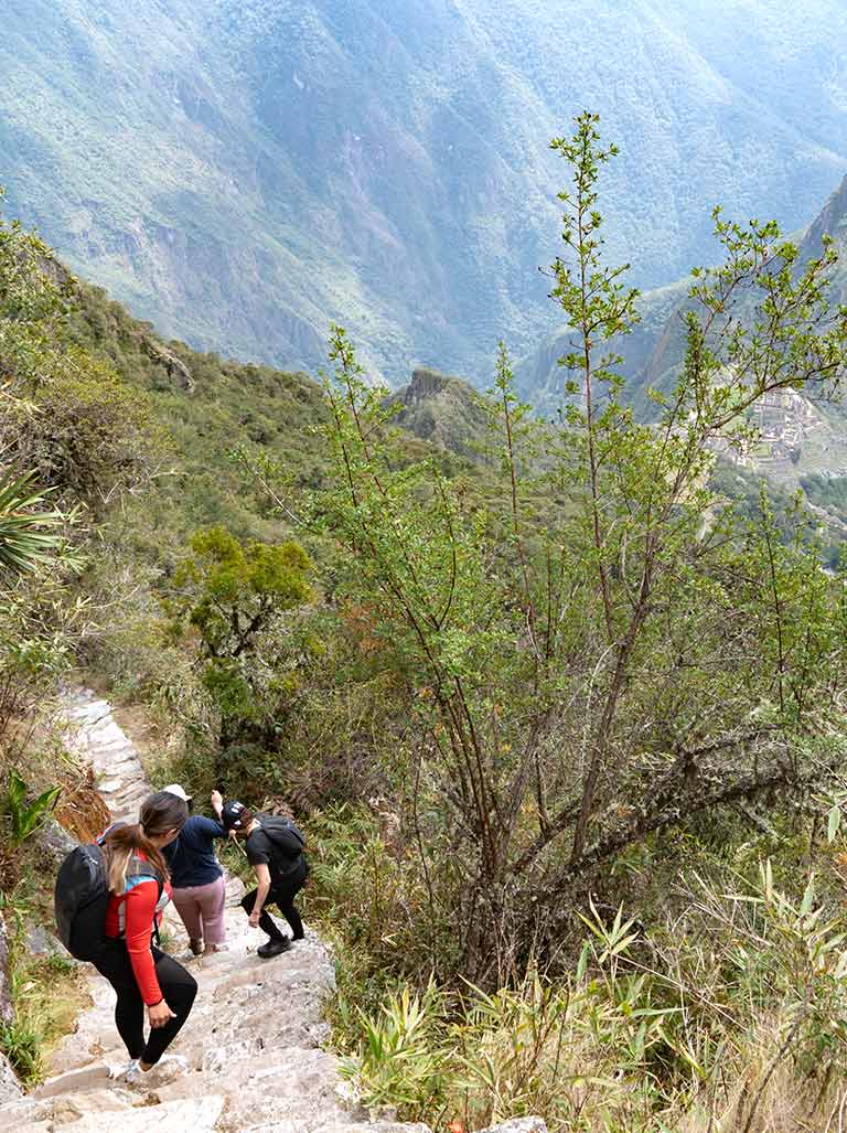 - The walk is arduous as you ascend hundreds of stone stairs. During the route the guide will provide you with information about the flora and fauna of Machu Picchu. He will also be in charge of providing security during the route.