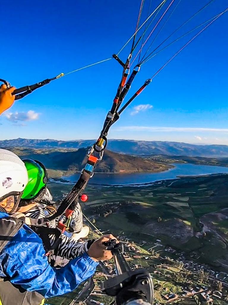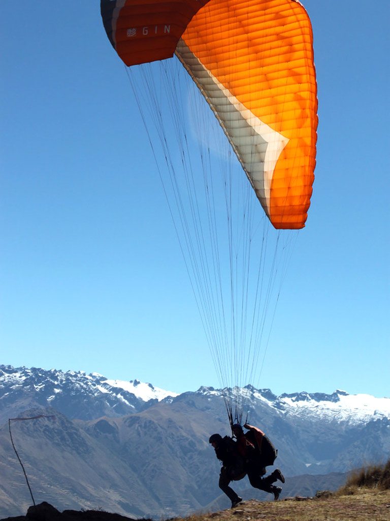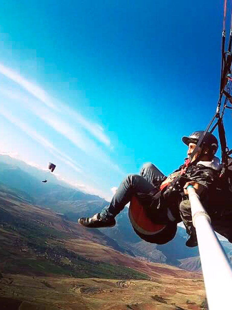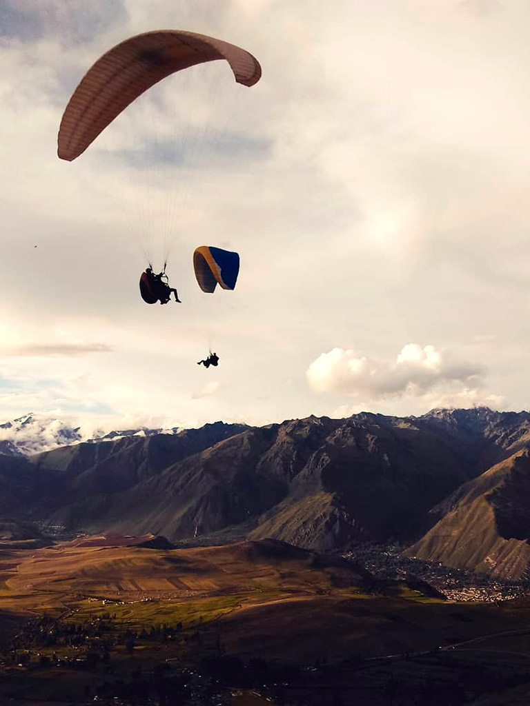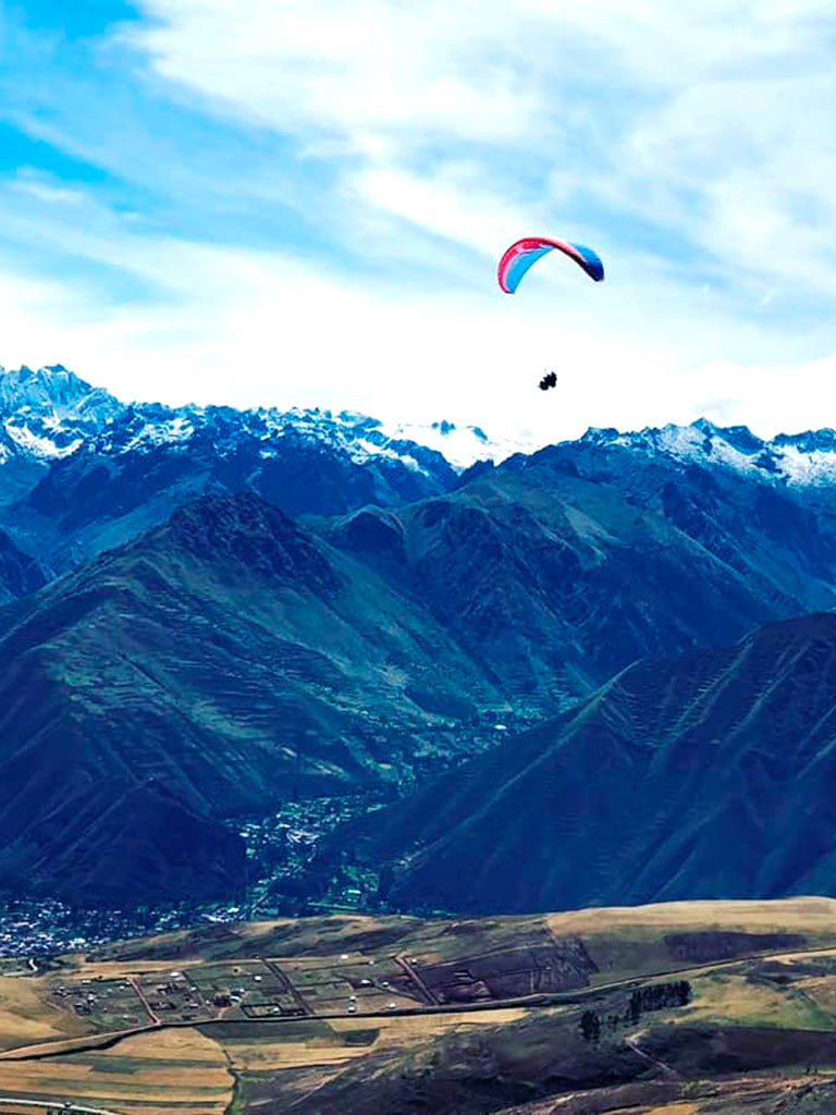 - The paragliding tour in the Sacred Valley of the Incas offers an experience full of adrenaline surrounded by the most beautiful mountain landscapes of Cusco, flying over with a team of professionals that include maximum security. The service is suitable for people of all ages capable of enjoying extreme adventures like this. The tour includes everything necessary such as pick-up from the visitor’s hotel, complete tourist transportation in a modern minivan, the company of a specialized professional guide (who flies over next to the tourist – tandem flight -, the necessary professional safety equipment, the return to Cusco and even recording the experience on a go pro camera along with photographs of the half-day tour. The service starts at 8 in the morning and ends at 2 in the afternoon.