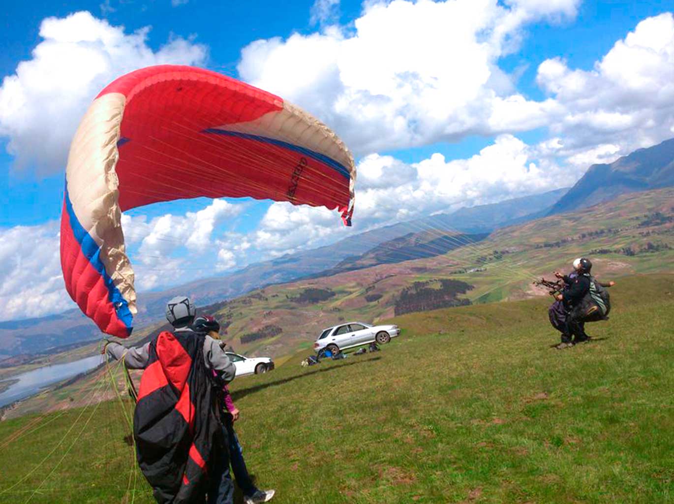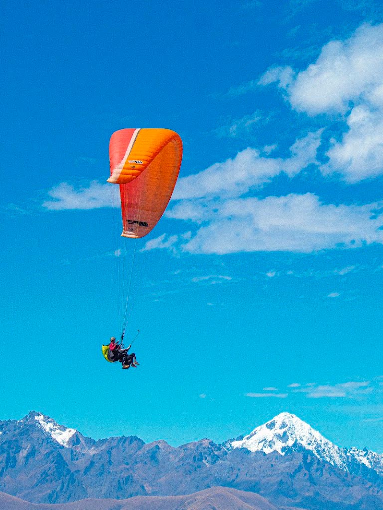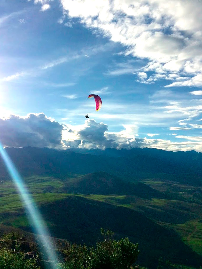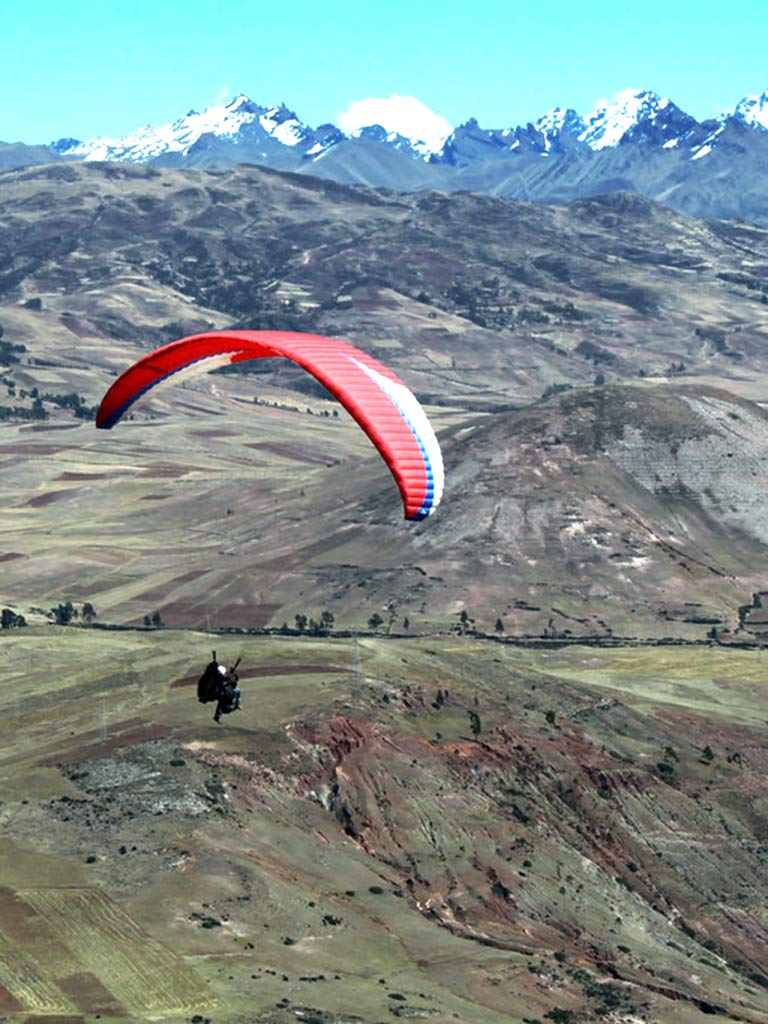 - Go on one of the most exciting adventures in Cusco with the half-day paragliding tour in the Sacred Valley of the Incas. The tour offers maximum security with the company of an expert guide, as well as the appropriate safety equipment and the correct preparation so that everything goes excellent during the tour. The service begins with the pick-up of the visitor in the city of Cusco. Then you travel in a tourist minivan to the Sacro hill, at the top of the town of Chinchero (Sacred Valley of the Incas). After the correct preparation, waiting for optimal weather conditions, the adventure takes place, seeing the beautiful mountainous landscapes of Cusco. Then we return to the city of Cusco where the tour ends at around 2 in the afternoon.