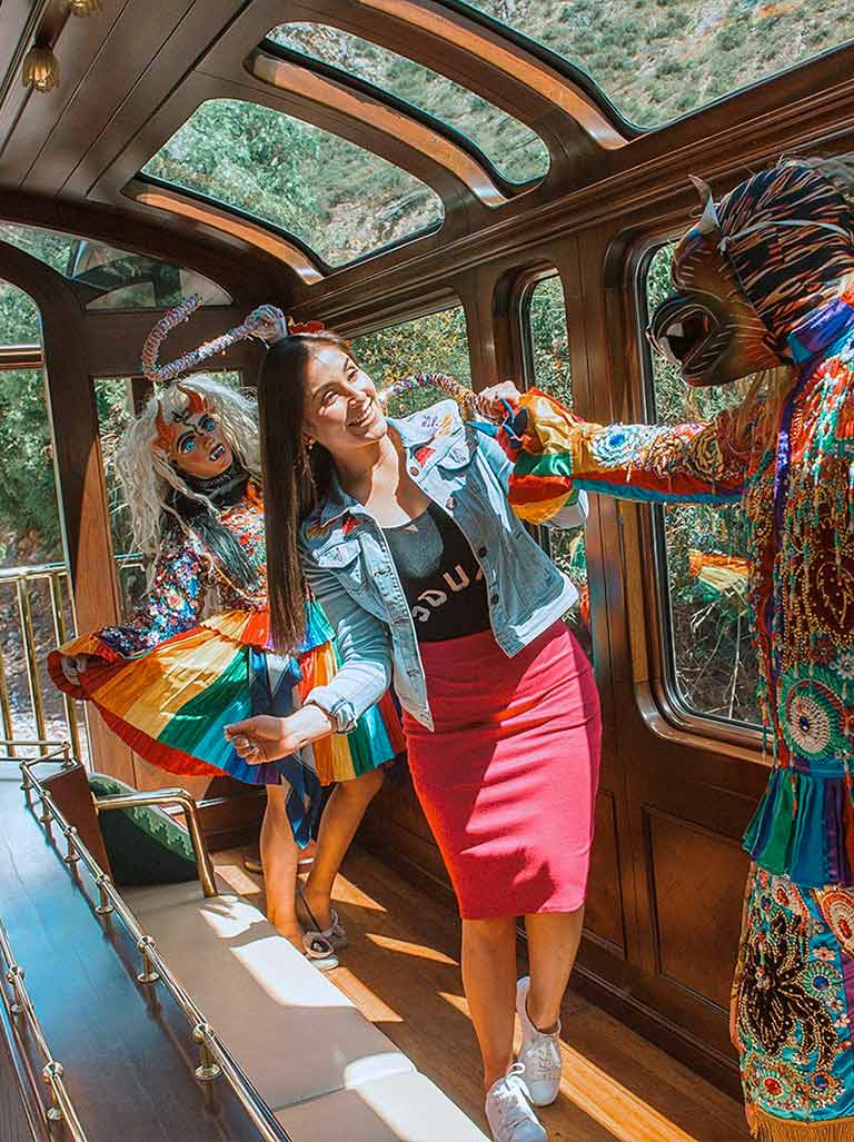 - En la estación de Poroy el visitante recibirá una cálida bienvenida con un show de danzas cusqueñas, así como un coctel o jugo de bienvenida. El turista podrá conseguir hermosas fotografías de esta experiencia.
