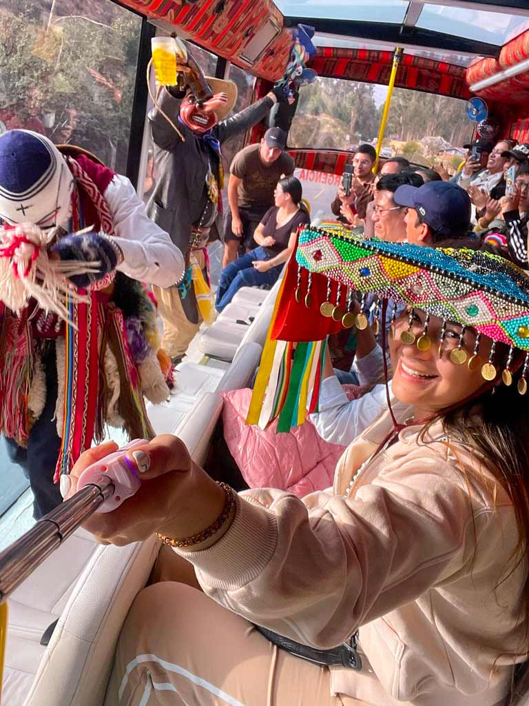 El Tour Escénico en Bus 180° no es un recorrido tradicional, es una experiencia llena de energía y diversión. Con música en vivo a cargo de un DJ, luces LED interactivas y animación a bordo, este tour convierte cada kilómetro en una celebración. Además, la “Hora Loca” con personajes sorpresa hará que nadie pueda quedarse quieto. ¡Disfruta de Cusco de una forma única e inolvidable!