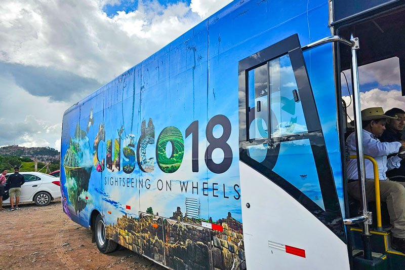 - Inicio del recorrido: Nos reunimos en la Avenida El Sol (frente al Paccha) y abordamos el Bus Escénico de 180°.
