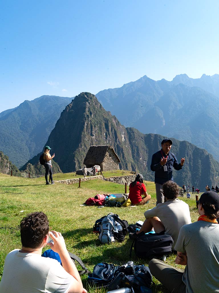 - El ‘Guiado turístico grupal en Machu Picchu’ comienza con el encuentro del turista en la puerta de ingreso de Machu Picchu. Allí el guía turístico esperará por usted junto al resto del grupo (10 visitantes como máximo). El grupo es reunido según el idioma del guiado: español o inglés.
