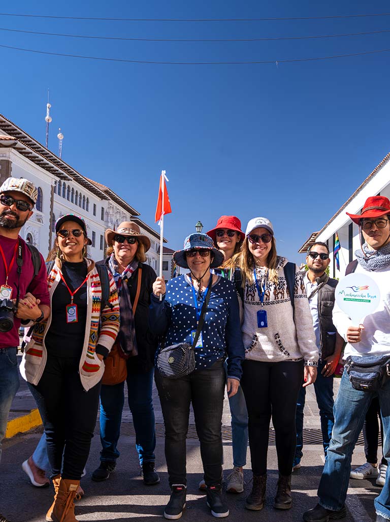 - El Free Walking Tour en Cusco inicia en la Plaza de Armas en el corazón de la ciudad a las 9 am. El guía turístico lo recibirá con la bandera de ‘Machupicchu Terra’ en la pileta, en el centro de la plaza.