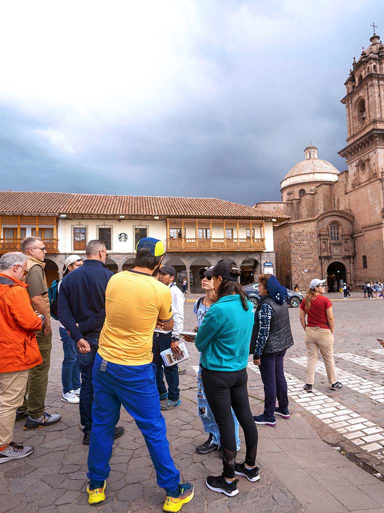 - Después el grupo continúa rumbo a la Catedral del Cusco donde conoceremos más sobre la historia del Cusco y su época colonial, la cual duró casi 3 siglos.