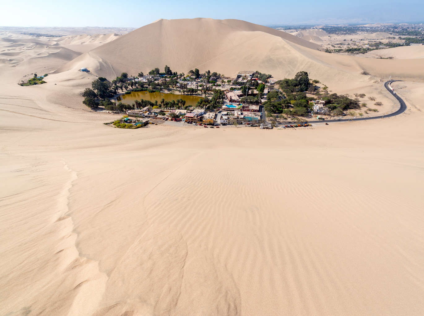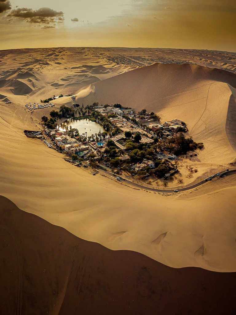 - Tras la visita a Paracas partiremos en transporte turístico rumbo a la ciudad de Ica (1 hora de viaje en promedio). Allí conoceremos el famoso oasis de la Huacachina, la cual está ubicada a solo 5 kilómetros del centro de la ciudad. En el pequeño poblado podremos apreciar la hermosa laguna formada en un desierto. Además, podremos disfrutar de sus sencillas calles rodeadas de un paisaje hermoso.