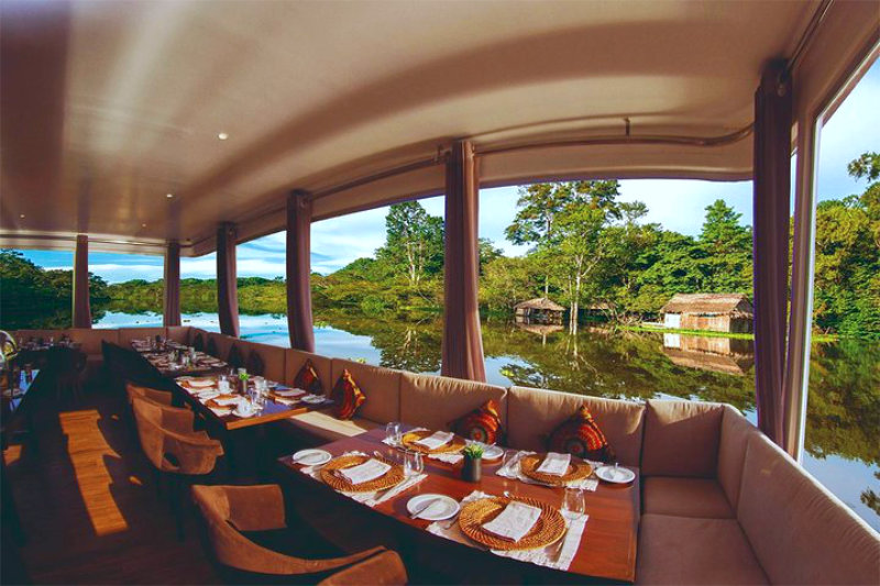 - De retorno al barco, el visitante tendrá un momento de relajo al ritmo de música en vivo y una cena espectacular con vistas al la Amazonía.