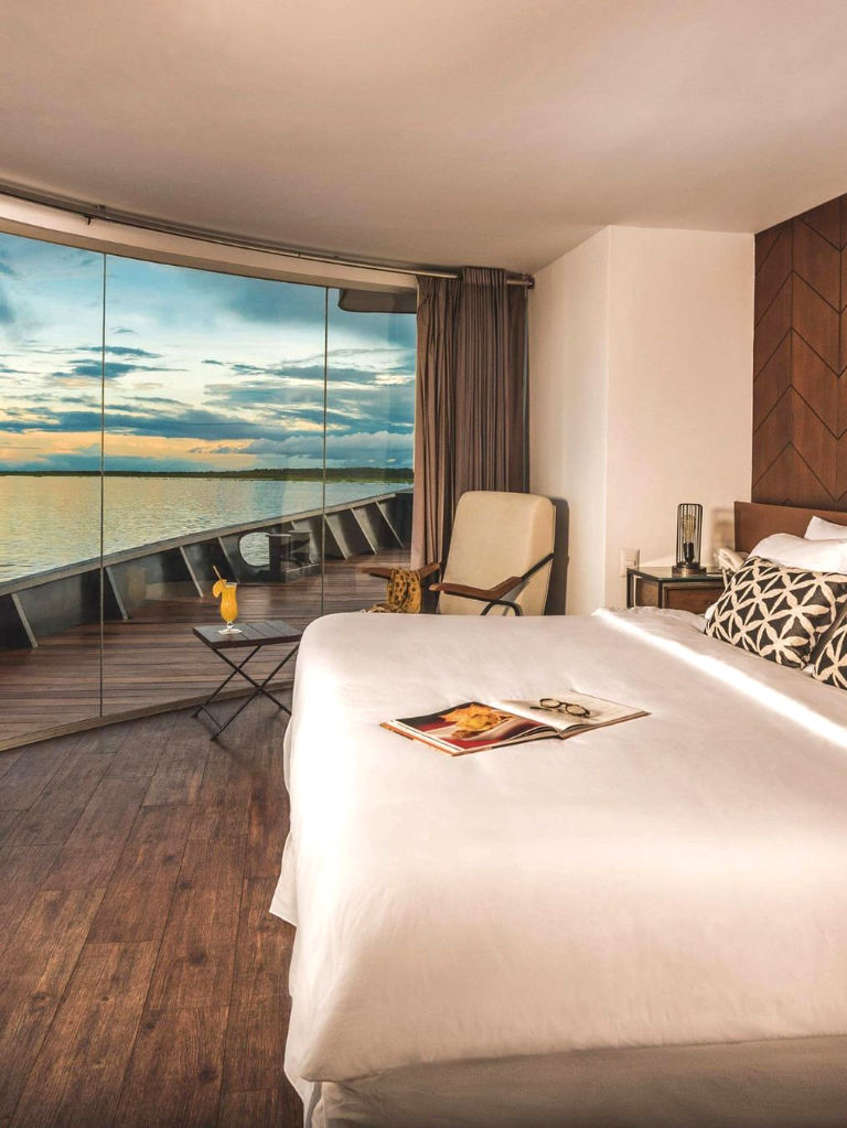 - Embarcación: 4 días y 3 noches en suites del crucero La Perla (con vistas privadas al río, aire acondicionado, escritorios, armarios, así como baño privado con ducha caliente).
