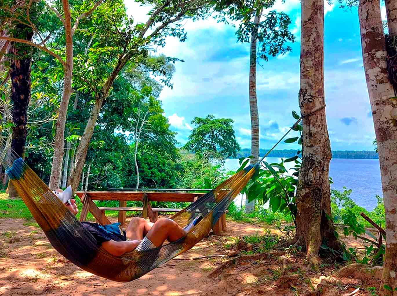- Tras la mañana de aventura retornaremos al eco lodge para almorzar. Por la tarde podremos disfrutar de las instalaciones del hotel como hamacas, caminatas, miradores y más. Allí podremos disfrutar de un precioso atardecer y avistamiento de animales y aves amazónicas.