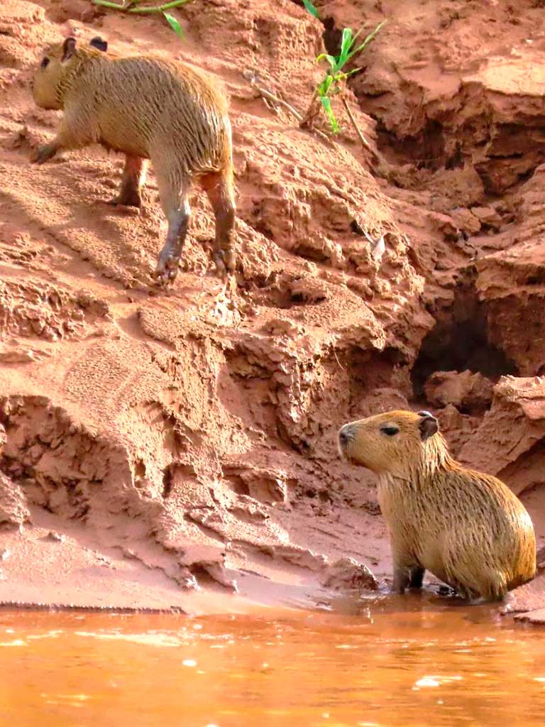 - El día 2 comienza temprano (al promediar las 4.30 de la madrugada) para realizar una excursión en bote hasta la collpa de los guacamayos durante la salida del sol. El viaje por el río Tambopata dura 1 hora 30 minutos. Con suerte también podremos apreciar mamíferos y aves como: el jaguar, el ronsoco, la sachavaca, monos y más.