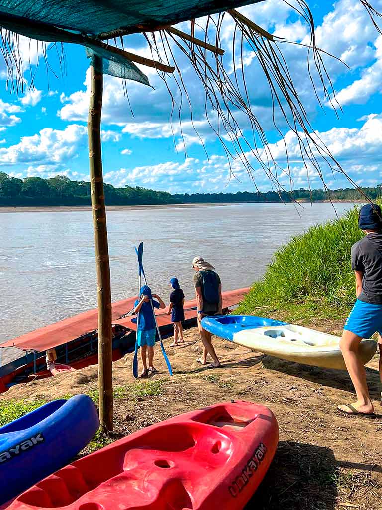 - Tras ver el amanecer disfrutaremos del delicioso desayuno incluido. La siguiente actividad será de aventura: realizaremos canotaje con kayaks en el rio una experiencia divertida en la selva hasta alcanzar la quebrada El gato.