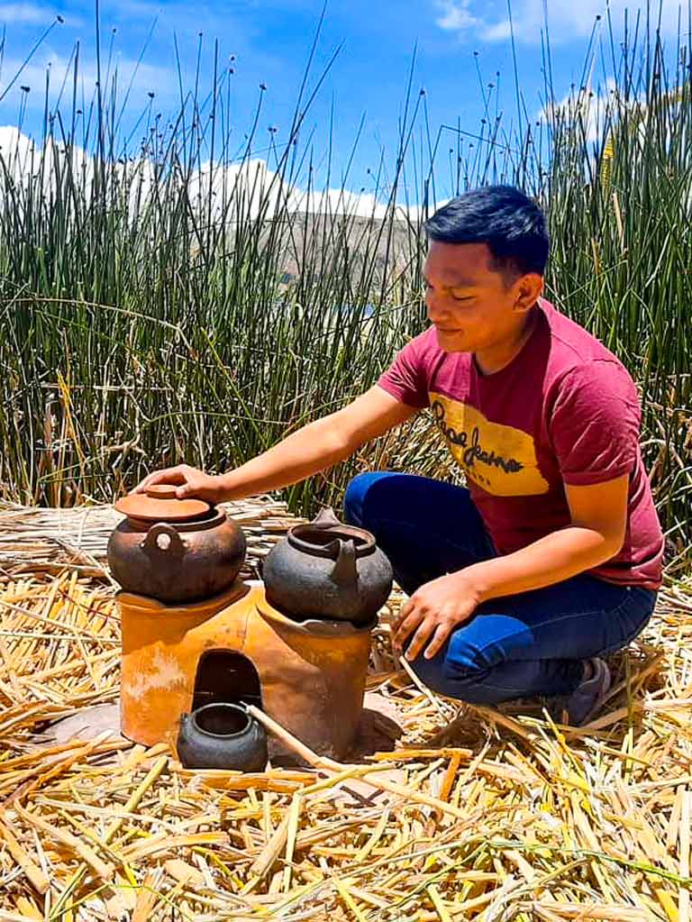 - Al llegar a las islas flotante de Uros, los visitantes son recibidos por las familias locales, quienes les dan la bienvenida y les explican su forma de vida, historia y costumbres.