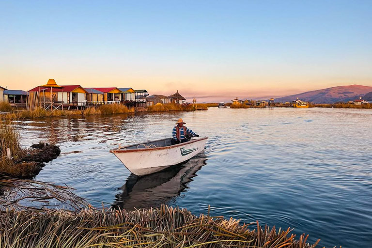 - Los visitantes son llevados al puerto de Puno, donde abordarán una lancha rápida con destino a las Islas Flotantes de los Uros.