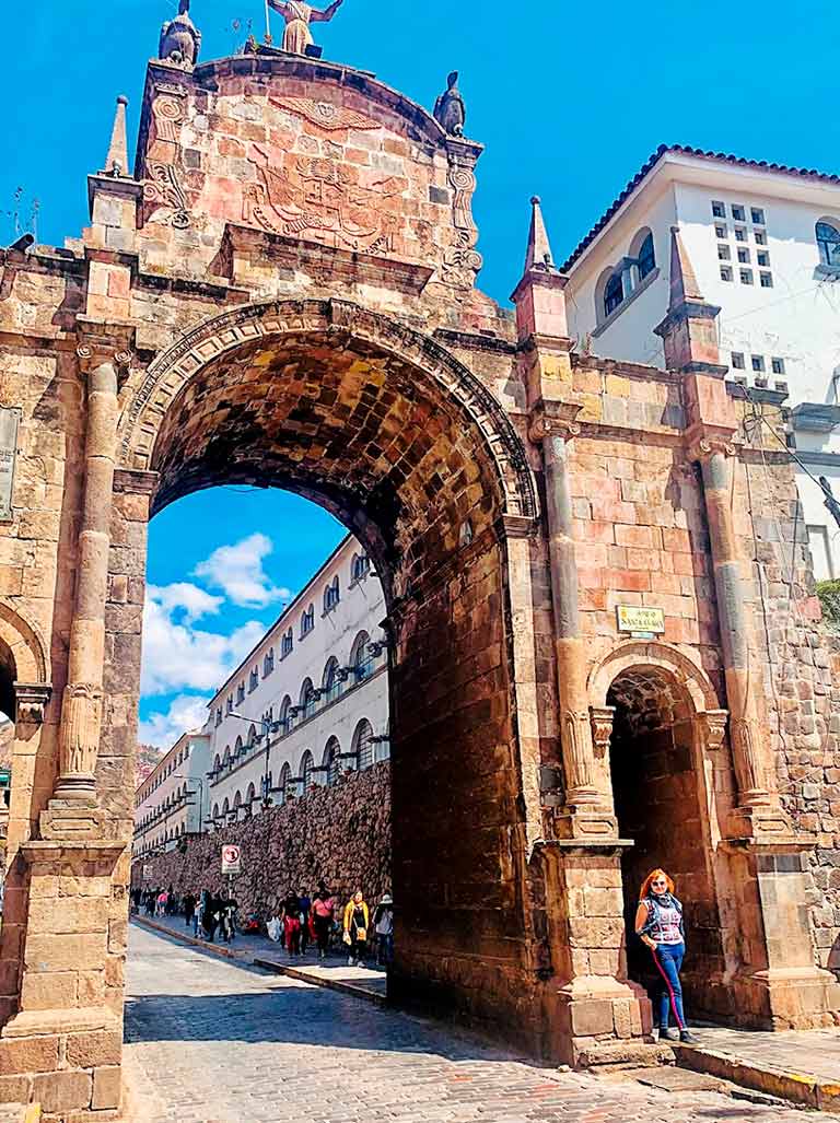 The Santa Clara Arch in Cusco, witness to centuries of history, stands majestically with its colonial architecture. This iconic monument, with its details carved in stone, evokes the grandeur and cultural legacy of the city.