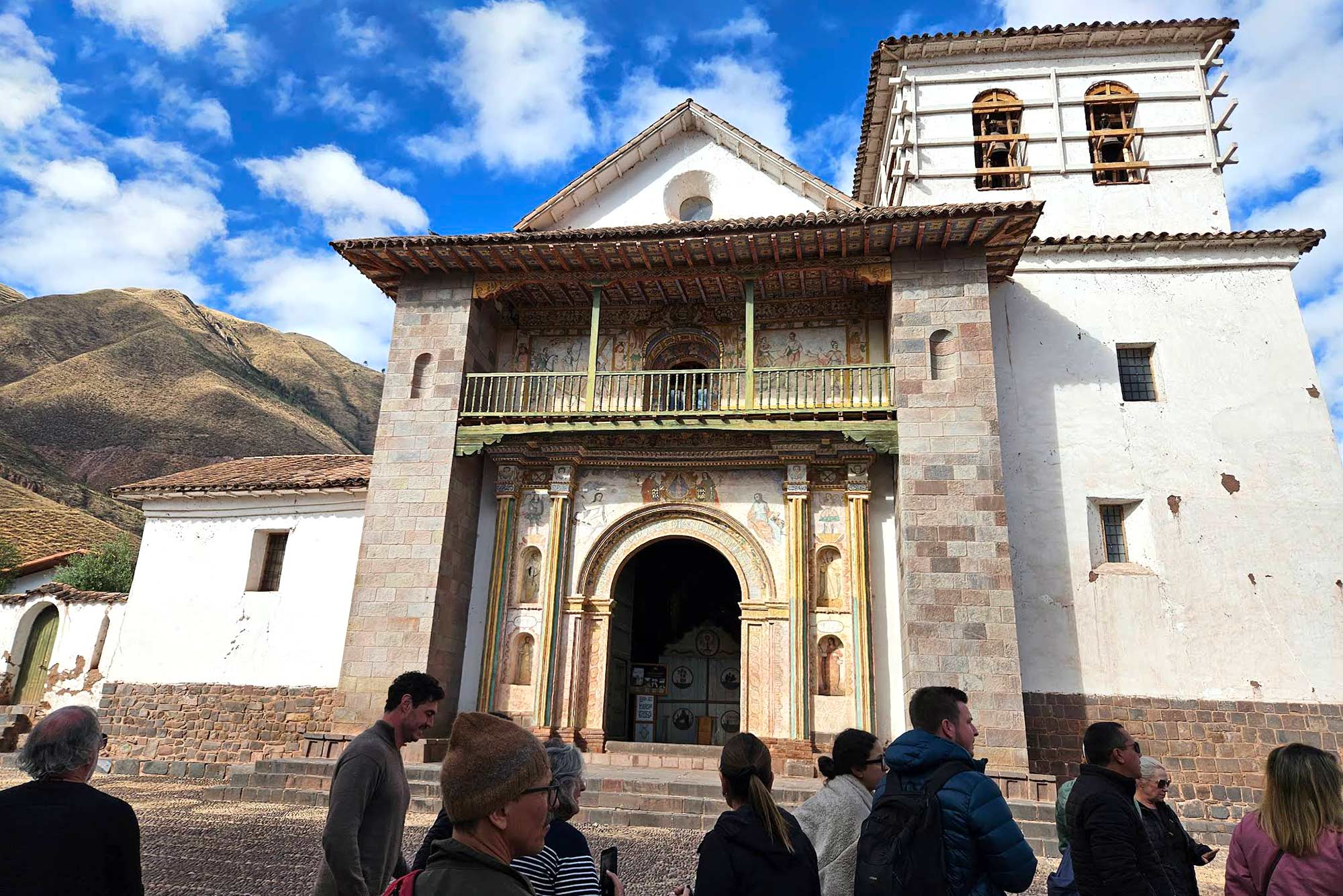 The colonial San Pedro Apóstol Church is known as the Sistine Chapel of the Americas. Its interior is completely decorated with murals, paintings, and altarpieces that reflect religious art from the viceroyal period, considered one of the finest examples of Andean Baroque.