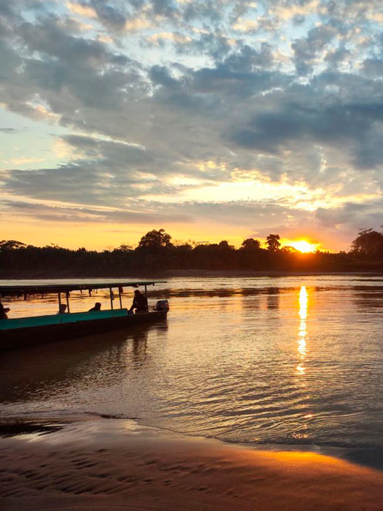 - Aboard a tourist boat we will make the trip through the waters of the river until we arrive at the Chuncho hostel in Tambopata.